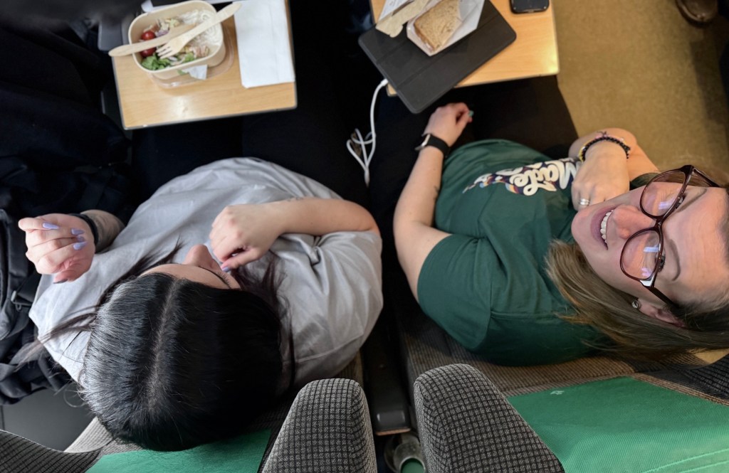 Ja, nu sitter vi här. På tåget. SJ bjöd på fika utanför vagnen, så pappmuggen med kaffe fick hänga med in. Lunch har beställts, inhandlats och ätits, så nu tar vi det lugnt en stund. Insuper känslan av att allt fortfarande ligger framför oss, lyckliga oss!