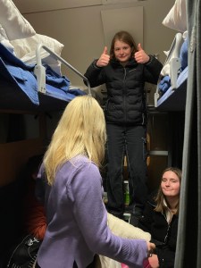 Efter lite förseningar sitter vi nu på nattåget. Det är väldigt trångt och varmt men alla är vid gott mod 🙂