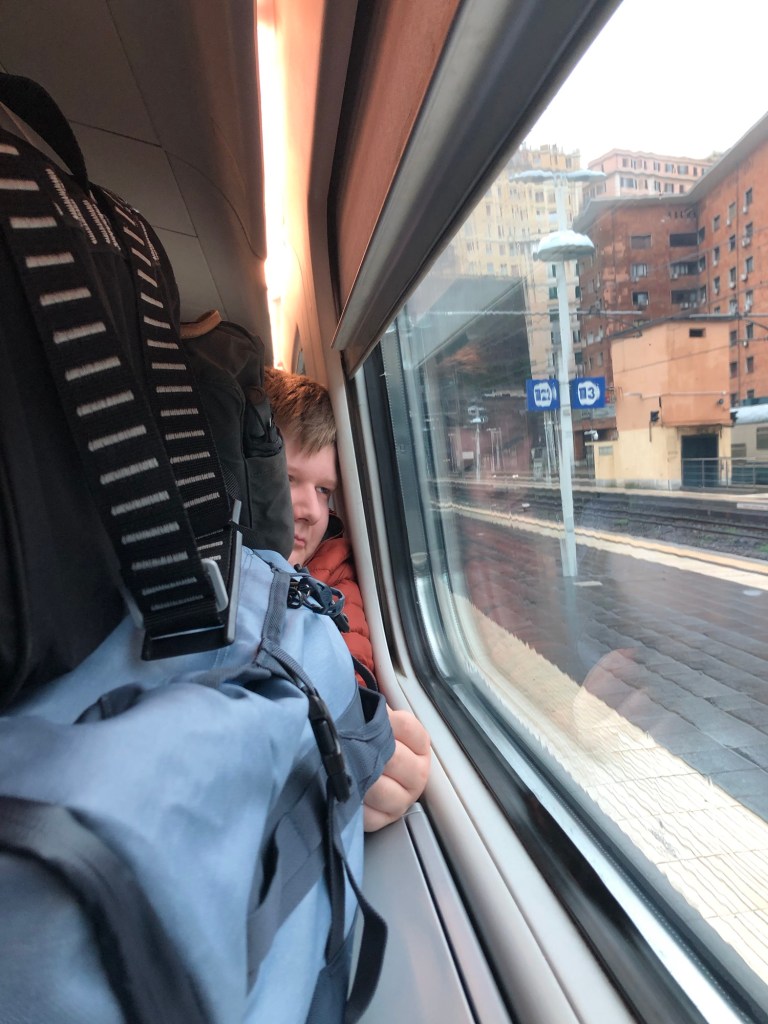 Tågresan till Rom var till en början stressig. (Börjar se ett mönster här?) Det fanns inga platser att ställa våra stora resväskor så vi fick lägga upp dem på bordet för att släppa förbi kön som hade bildats. Vi fick sitta så ett tag tills vi insåg att det fanns utrymme mellan sätena.