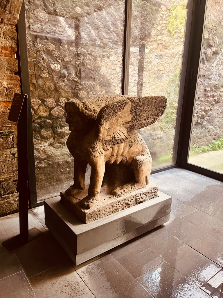 Dagen började tidigt med en bussresa klockan 7 på morgonen mot Pompeji. Väl framme på platsen hade vi en guidad tur runt området och det var helt otroligt. När vulkanen Vesuvius fick utbrott år 79 e.Kr så begravdes hela Pompeji (här kan du läsa mer). Vår guide berättade att när man började gräva fram Pompeji senare hittade man människor som hade begravts av lavan och askan gjorde att deras kroppar bevarades i det tillstånd som de dog i. Det man valde då att göra, var att man gjorde gipsavgjutningar av dessa människor (se bilden nedan).
