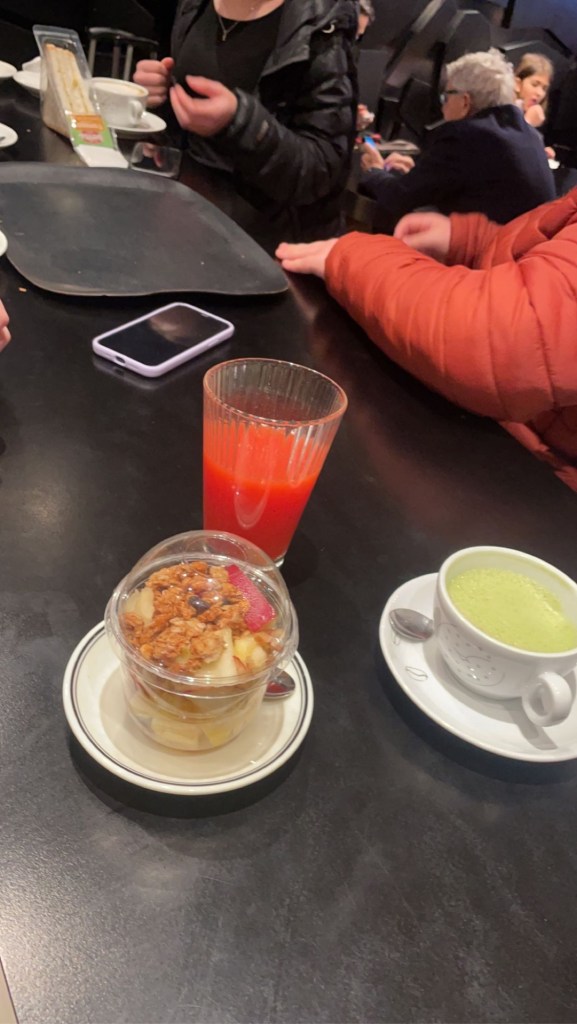 Vi vaknade runt 7.30 pÄ morgonen för att sedan bege oss emot tÄg terminalen i rom. Vi satte oss pÄ ett fint café dÀr alla satt och Ät lunch