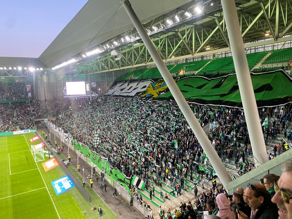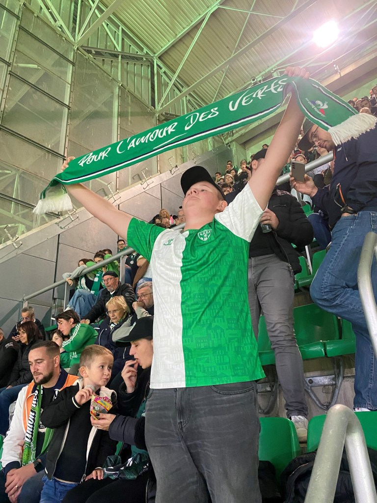 I Saint-Ètienne så väntade Noa och Noas värdfamilj plus en kompis till pappan på mig och vi snabbade oss till bilen och åkte den relativt korta sträckan mot Stade Geoffroy-Guichard. Man hörde läktarna från några hundra meters avstånd 40 minuter innan matchstart och det började pirra lite i magen och man kände att nu är det match på riktigt. Det är få saker jag tycker som är så roligt som att gå på live-fotboll och det kändes kul att få dela den upplevelsen med Noa.