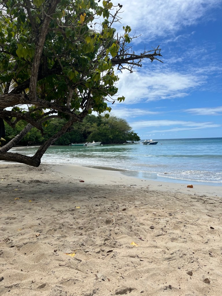 Under eftermiddagen tog vi en tur till 2 olika stränder. När vi kör med vår lilla bil här på ön blir man tagen av landskapet. Det är nästan inte platt någonstans. Det är också väldigt grönt och frodigt. Infrastrukturen skulle man kanske kunna önska mer av men när man väl kommer till stranden och ser havet glömmer man det lätt.