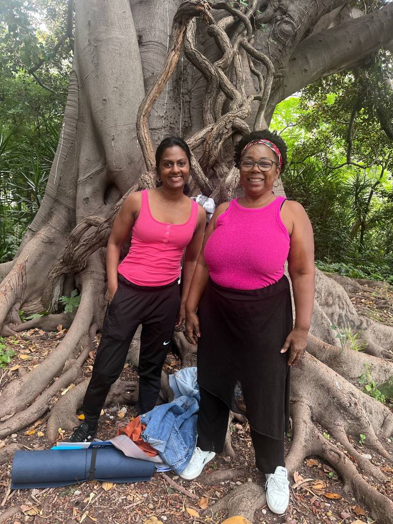 Att promenera till en park och sedan göra övningar på en yoga-matta var en väldigt trevlig start på dagen. Vi parades ihop två och två och jag fick promenera med Lydia, en härlig kvinna från Martinique. På vägen till parken lärde varandra lite fraser på våra respektive språk, samt diskuterade likheter och olikheter mellan respektive länder. Hon berättade också om rasismen i Martinique och hur det är att bo i ett franskt departement.