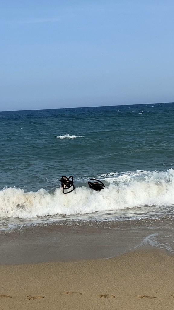 Innan bussen gick köpte vi lite glass som vi Ät i vÀntan pÄ dom som inte hade bytt om Àn. Men sedan kom vi alla ivÀg till stranden och det var en gul flagga uppe vilket jag tror betydde att det var lite farligt för att vÄgorna var sÄ höga. Men det var sjukt kul sÄ vi badade ett tag ÀndÄ!