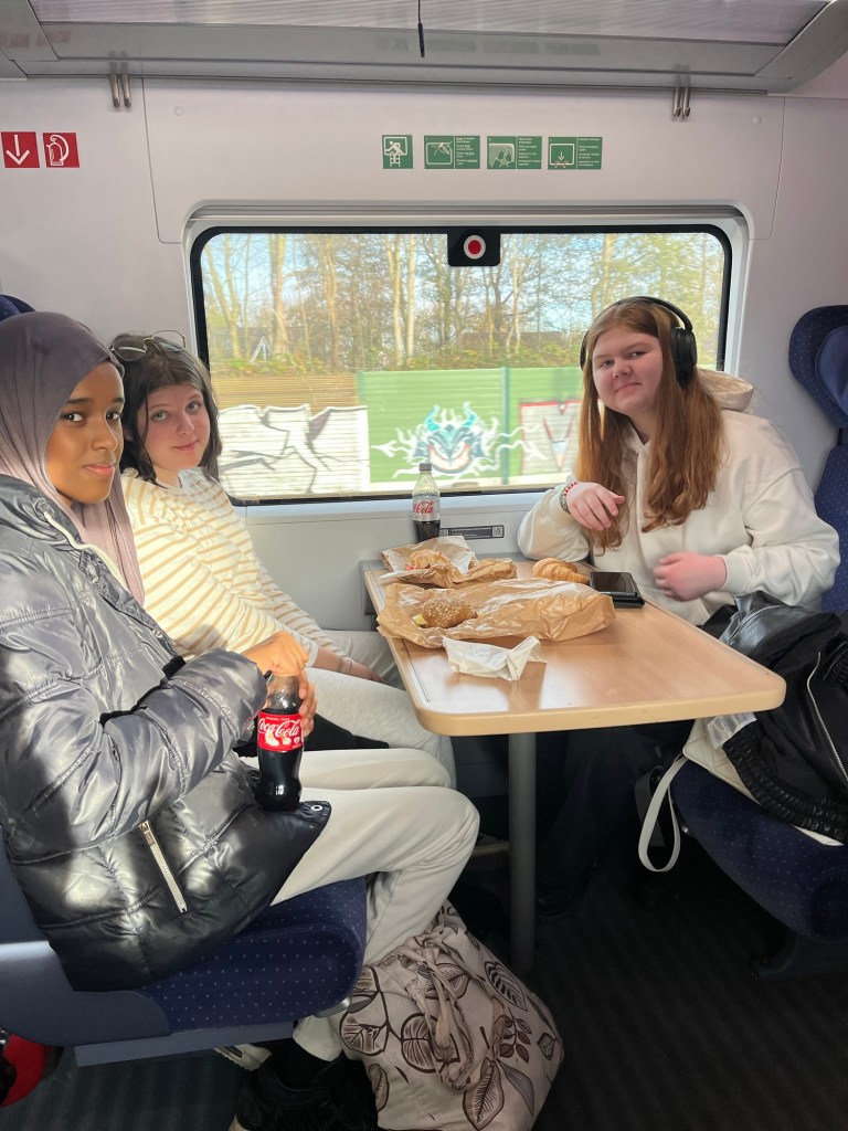 Vi fick lite stress när tåget till Hamburg var lite sent. Dessa fantastiska ungdomar anpassade sig dock snabbt till situationen och ingen klagade när donken blev utbytt till snabba mackor. Nu rullar vi dock vidare helt enligt tidplan. Tysk ordning, vi gillar!
