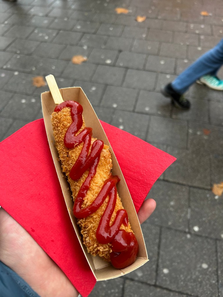 Idag var vi i essen och vi började med att köra någon slags detektiver som ska lösa ett mord. Efter det blev det shopping jag köpte en corndog. Det är en korv på en pinne som blir friterad.