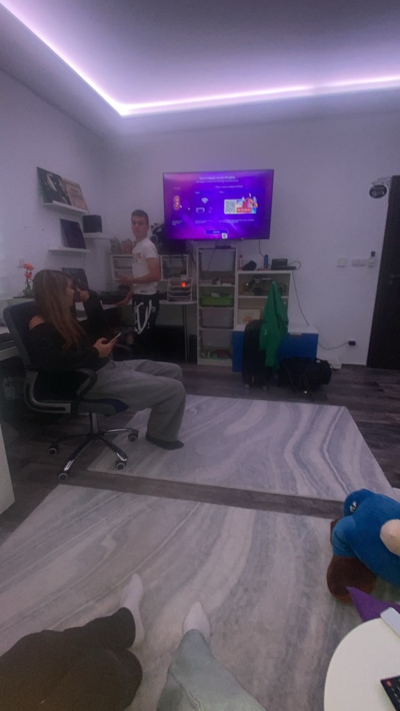 Vi gjorde massor av saker tillsammans och vi hade väldigt kul. Vi körde just dance, kurragömma och massa annat. Vi var ute väldigt länge men alla åkte hem när det började att spöregna.