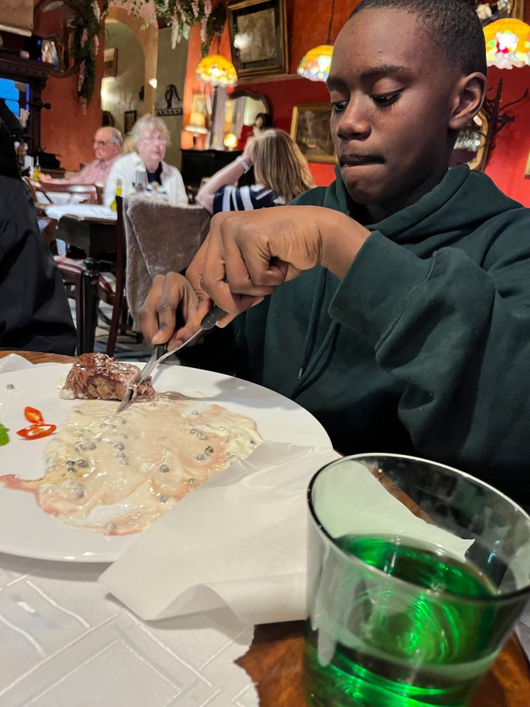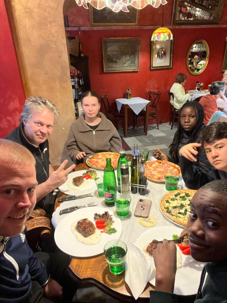 Till middagen lyxade vi till det och gick på restaurang. Där goda köttbitar och fantastiska pizzor stod på menyn.