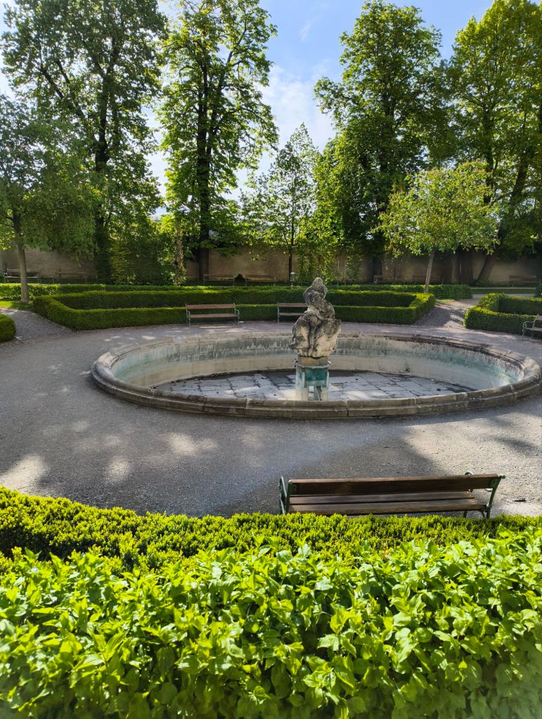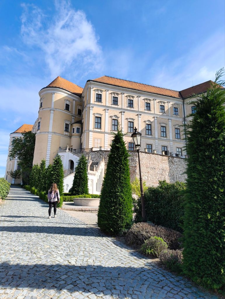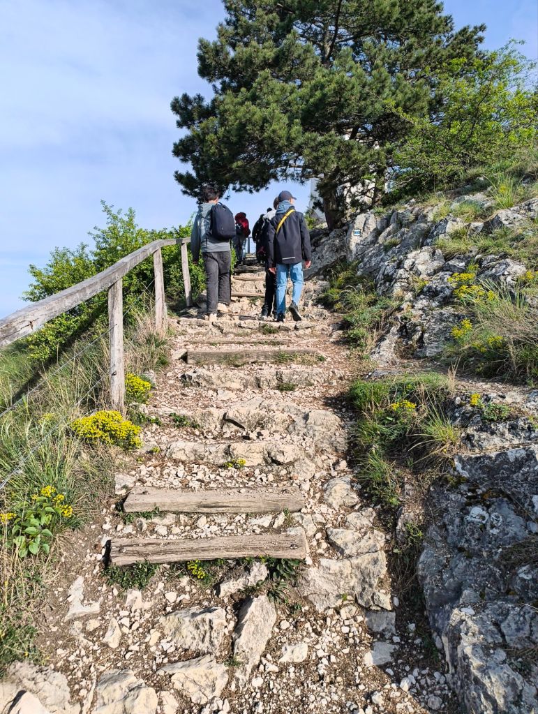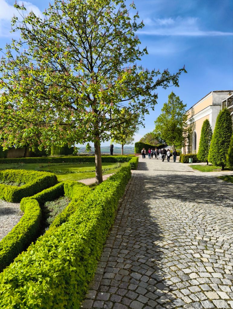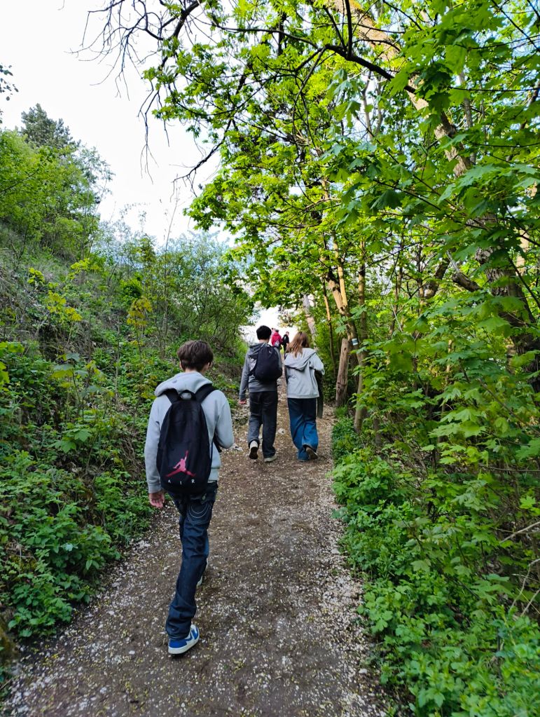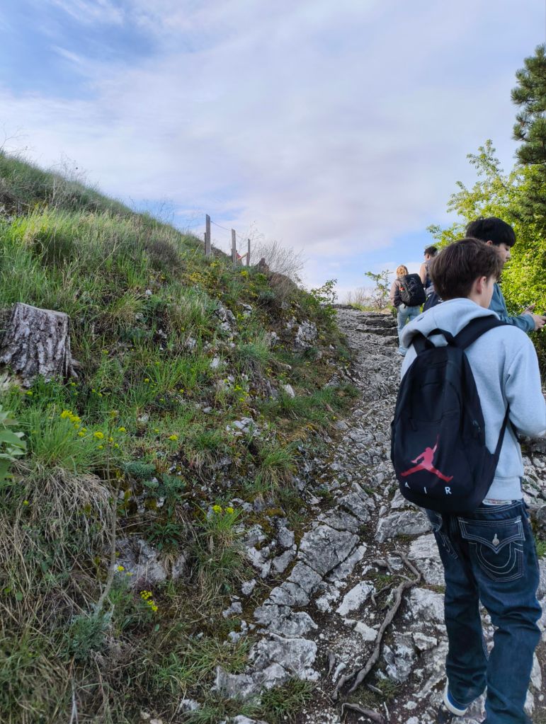 Direkt när vi kom fram så började vi gå. Vi skulle upp för ett berg/en stor kulle med en kyrka på toppen. I samma stad så fanns det ett slott och en slottspark som man kunde gå runt i. Det var väldigt fin natur.