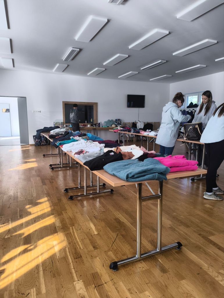 Sedan promenerade vi bort mot skolan igen för att förbereda inför någon marknad där man kan byta grejer.