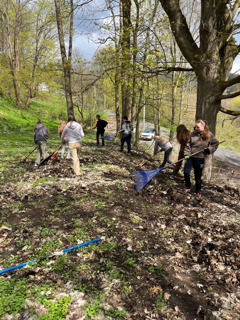 Jag och Biza började dagen med en god frukost (Yoghurt och macka) och spelade sedan spel med våran Buddy. Efter ett tag var det dags att städa och vi krattade löv.