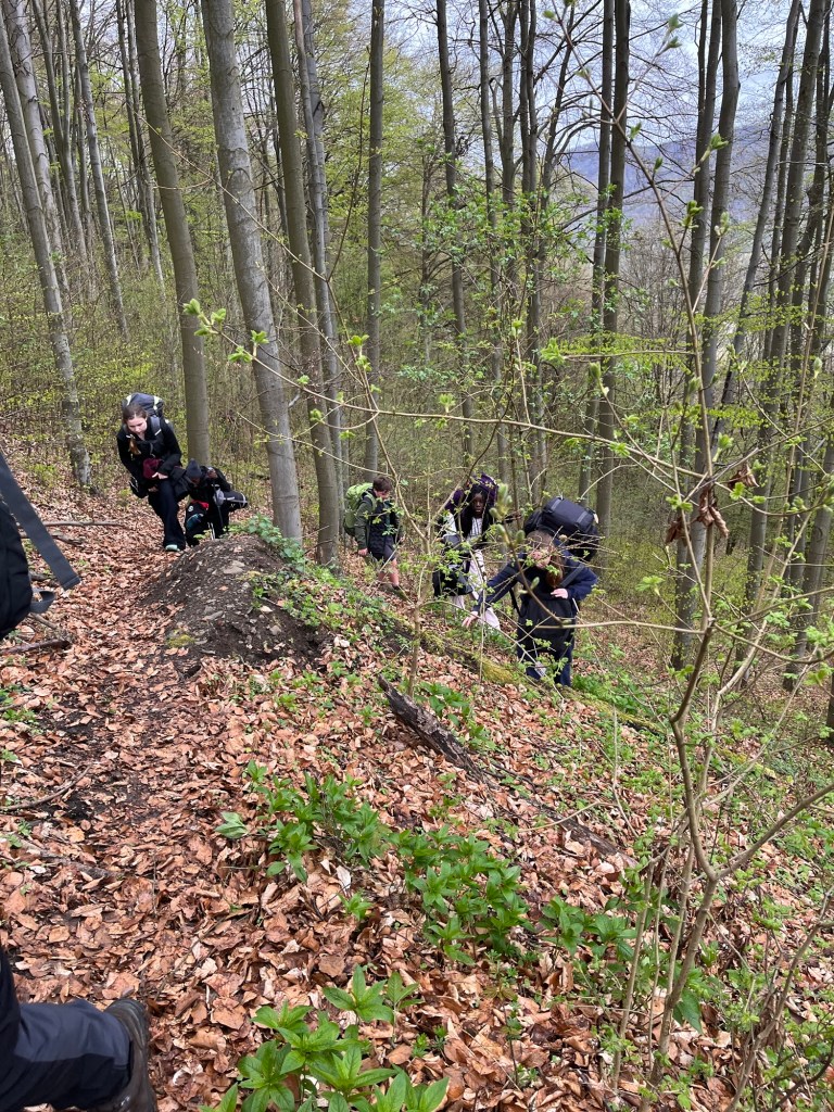 Måndagen blev en lång resdag innan vi kom fram till slottet. Kl 9.00 mötte vi upp de tjeckiska eleverna och lärarna på tågstationen i Prag. Därefter blev det tre timmar tåg, två timmars väntan på en station, ytterligare 20 min tåg följt av drygt två timmars vandring upp till slottet i en väldigt kuperad terräng.