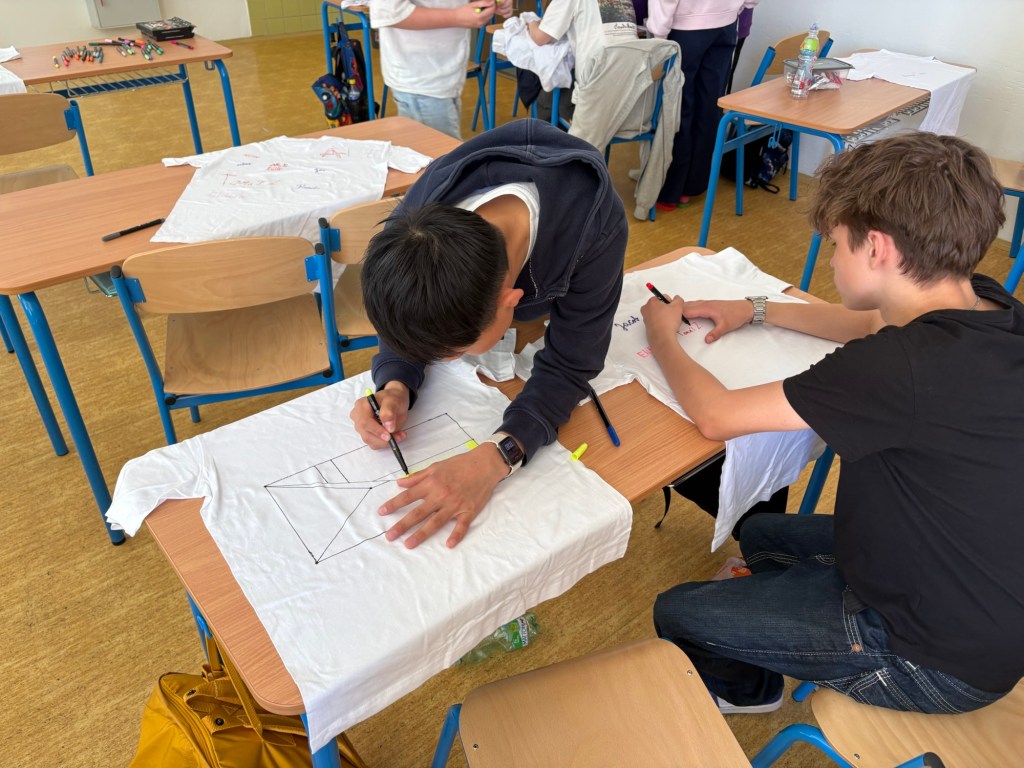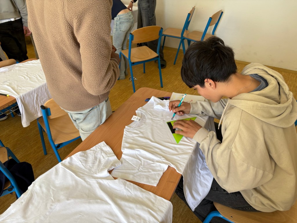 Idag har eleverna fått några lättsamma och roliga AI övningar där de fick rita och göra rebusar. Nu jobbar de på för fullt med att dekorera varandras tröjor som de behåller som minne.