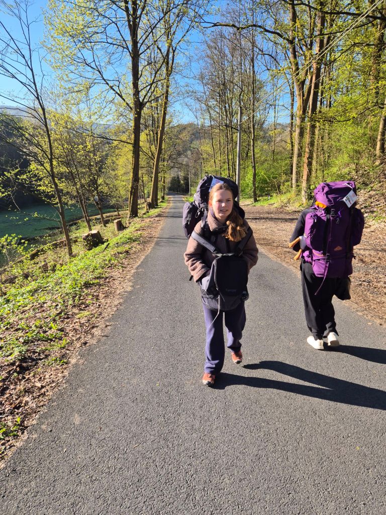 Vi startade vår vandring ner från slottet kl 8 men Freja verkar redan ha vänt tillbaka?!