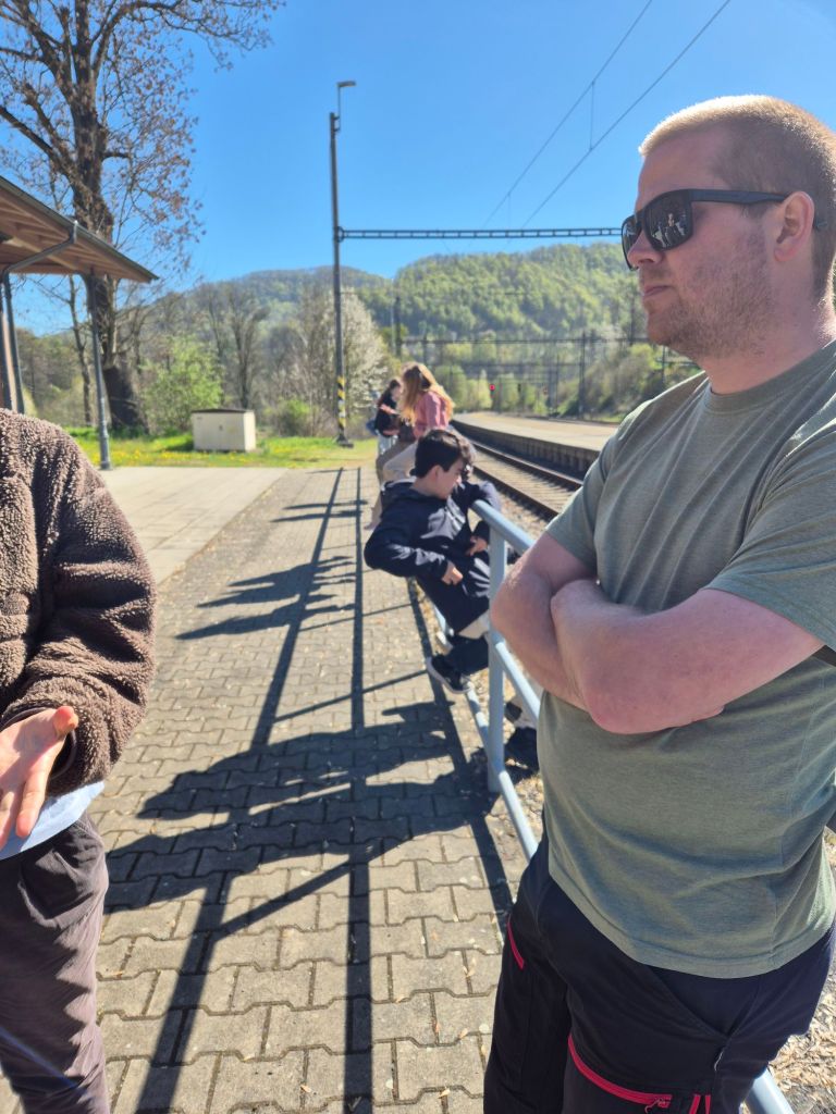 Framme vid stationen.