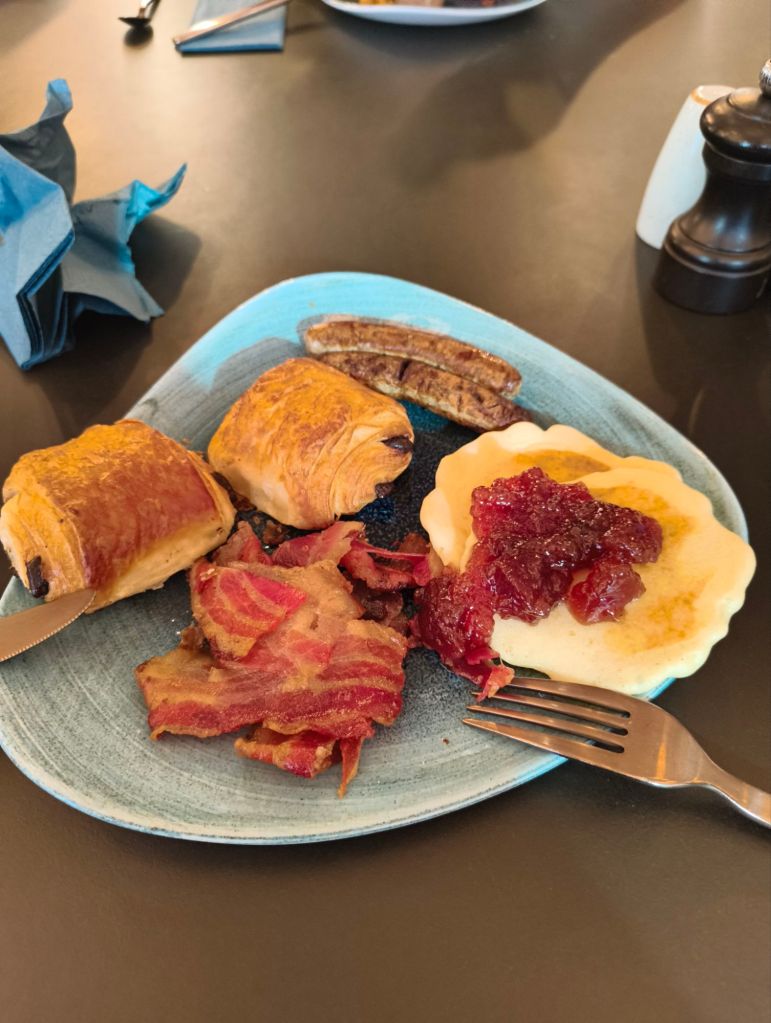 Vi vaknade för att äta frukost 8:30. Vi åt frukost, och sedan gick vi tillbaka till rummet i ca 2 timmar innan vi gick ner till receptionen 11:45.