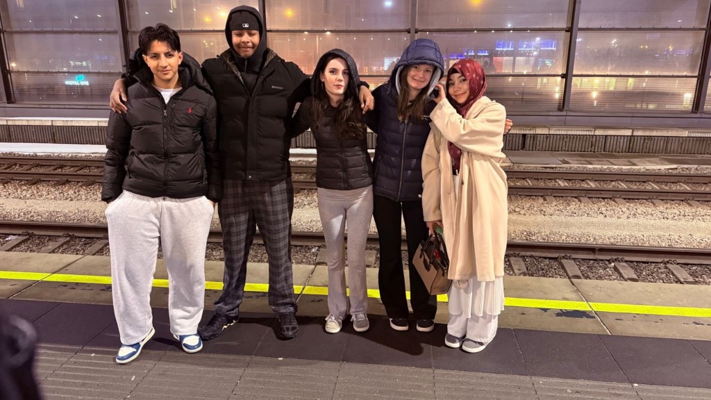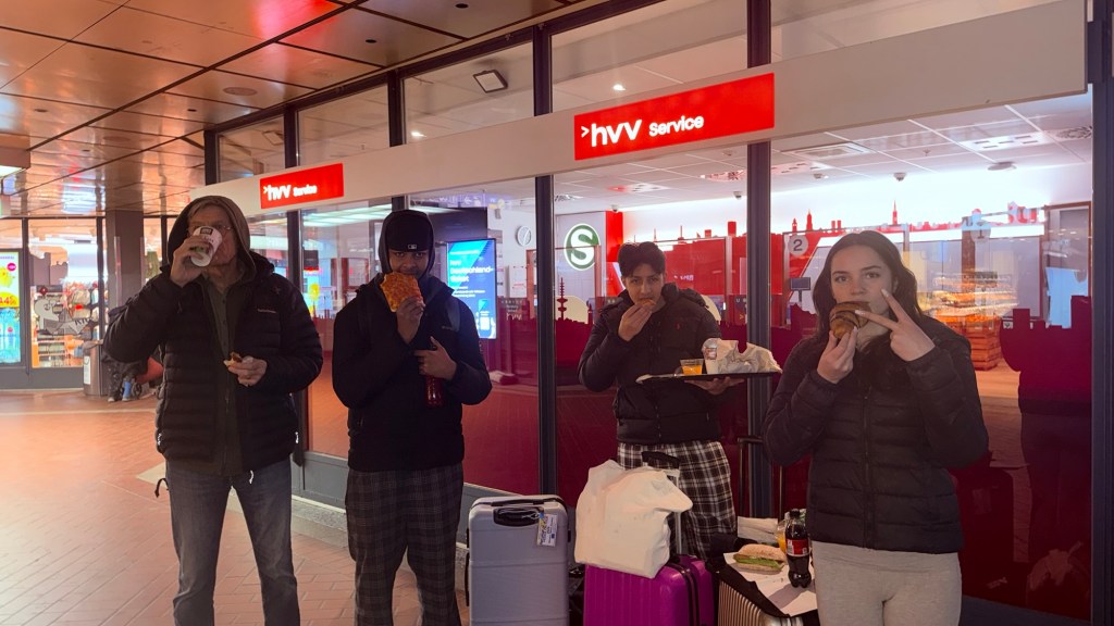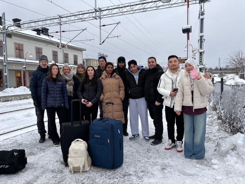 Vi träffades klockan 9:50 vid centralstationen och pratade en stund medan vi väntade på tåget. För att kunna aktivera våra biljetter behövde vi ladda ner en app. Det var mycket kallt, vilket gjorde processen något mer komplicerad. Tåget var väldigt fullt, så det tog ett tag innan vi hittade bra platser att sitta på. När vi väl hade satt oss ner bestämde vi oss för att spela kort och andra spel för att få tiden att gåNu är vi i Stockholm central, vi har beställt för lunchen hamburgare och lite pommes fritesen.Nu vi är i Hamburg, Germany kl 6:10 och äter frukost.Vi stannade i Hamburg station i typ 2 timmar. De var ganska kallt. De som var jobbigaste är hemlösa personer. Stationen i Wien var väldigt fullt med turister och människor. Vi åt middag där och efter de fick vi vänta på tåget, denna bilden var de sista bilden vi tog tillsammans innan vi åkte natt-tåg till Simeria.Nu är vi i Romania valcea, i National Collage of Informatics ”Matei Basarab” vi åt pizza på Romania lunchen.Första saken som vi gjorde i skolan var en presentation om Härnösand. Vi presenterade Hedda skola och lite om Wendla skola.