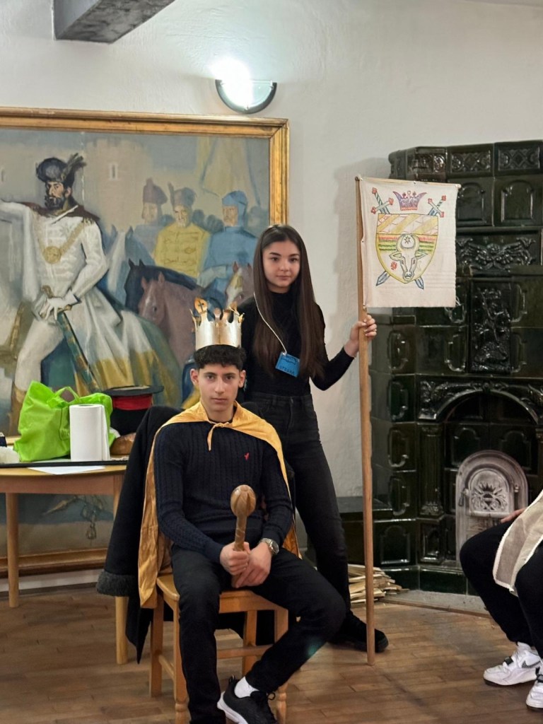 Bakom mig är det ett museum om familjen Balcescu och det är en av Rumäniens viktigaste familj. Sen så körde vi ett rollspel där jag var kung och fick bestämma vilken roll personer ska ha. Sen så åkte till saltgruvan i Ocnele Mari där fanns det go kart.