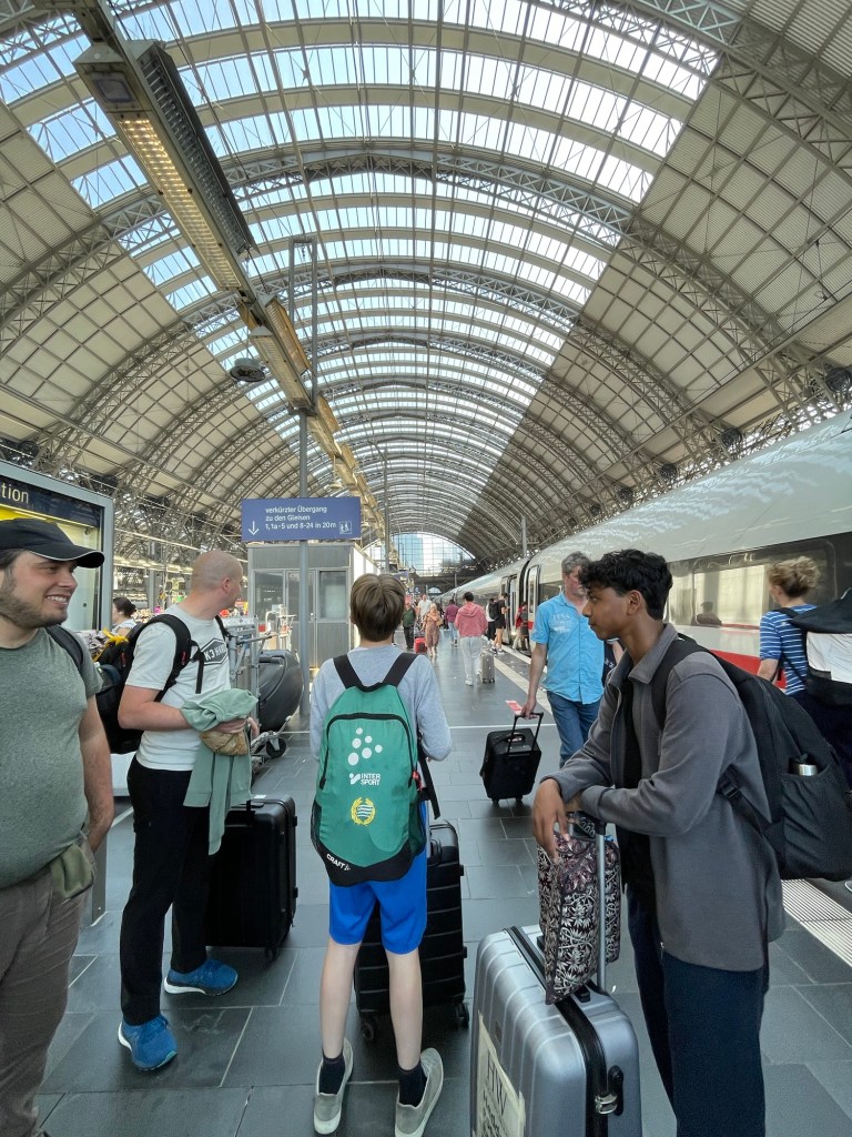 Just nu är vi i Frankfurt. Det är otroligt vart och man får solsting direkt.