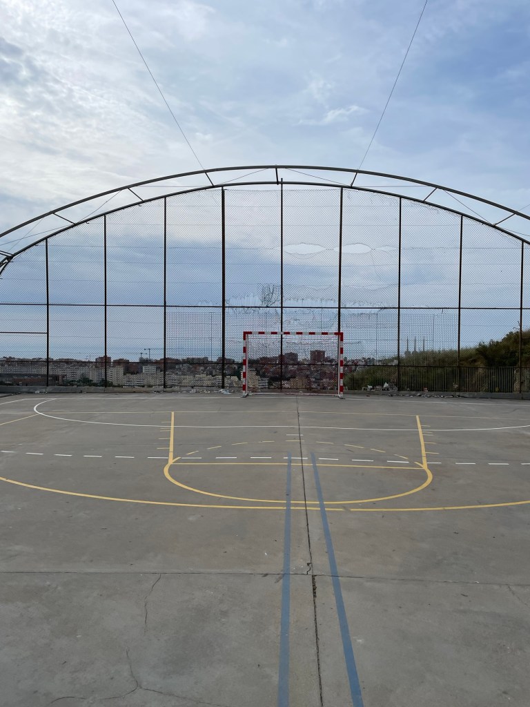 Idag har vi varit på skolan. Den är ganska sunkig eftersom det var ett fängelse för inte så länge sen. Men fotbollsplanen har ändå en fin utsikt. Man ser hela santa coloma från den.