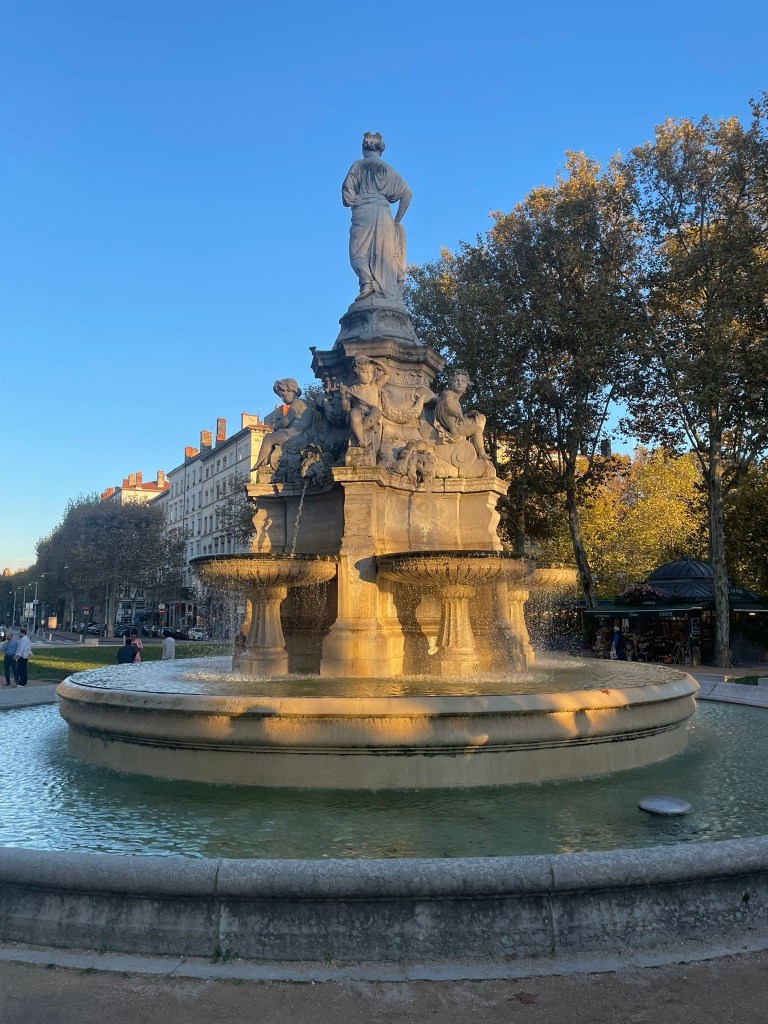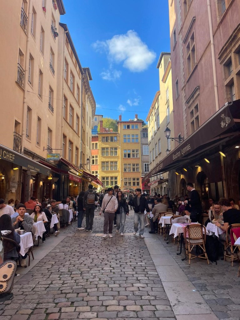 Dagen började med att vi skulle samlas på skolan kl 10.00, säga hejdå till våra värdfamiljer och sen ta minibuss till Lyon. När vi var framme i Lyon lämnade vi bilen och gick en liten bit till hostellet som vi skulle bo på. Den andra gruppen behövde åka en omväg för översvämningarna så dem skulle komma lite senare. Vi fick våra rum och lämnade våra väskor. Efter det gick vi ut för att leta efter ett ställe att äta lunch på. Det fick bli ett litet taco ställe som låg nära. När vi var mätta och belåtna gick vi vidare ut i stan för att kolla runt lite och kolla runt i olika affärer. Det var jätte varmt och skönt. Det var även bland annat många fina byggnader, vägar, parker, broar, fontäner, och affärer. Tiden gick snabbt och vi gick för att träffa den andra gruppen som var på ett shopping-center. Vi möttes upp och bestämde oss för att gå och äta middag. Alla ville inte ha samma sak så jag, Indra och Ludvig bestämde oss för att gå och äta sushi i restaurangen som låg nästan bredvid, medans dem andra åt hamburgare. Vi satte oss ute då det forfarande var ganska varmt. Det kröp en snigel på Ludvigs ben och det fanns flera i hålen på bänken så vi flyttade oss, då hörde vi och såg några råttor, så vi flyttade på oss igen. Sushin var jätte god. När alla var klara gick vi tillbaka till hostellet.