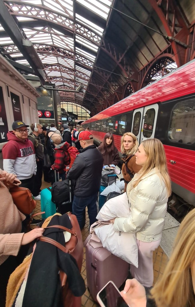 På en av stationerna så kollar vi ut genom fönstret och där ligger en man avtuppad och medvetslös med väldigt många militärer runt sig som turades om att göra hjärt- och lungräddning. När vi lämnade perrongen så var det sista vi såg att de fortfarande höll på med HLR. Varför det fanns militärer på plats var att många av dom hade haft permission under helgen och skulle tillbaka till sina regementen så tåget var fullsmockat av militärer också.