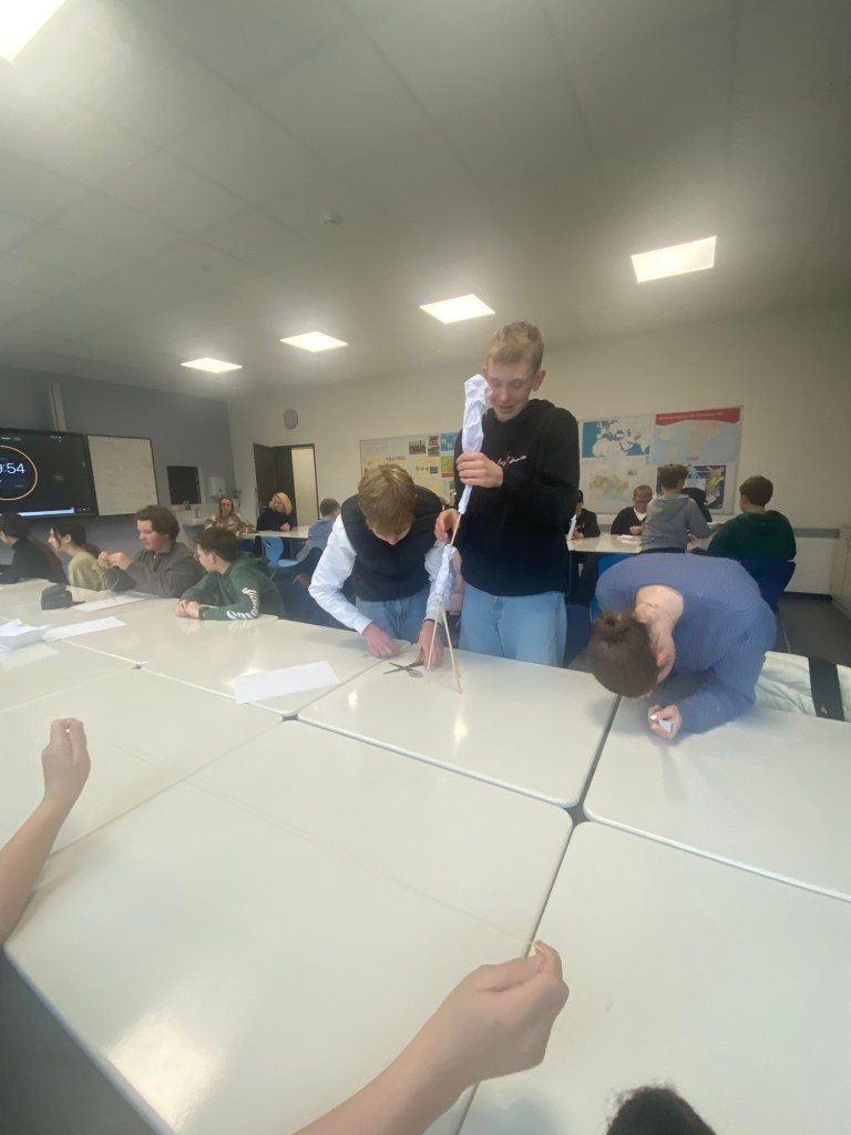 Idag så hade vi vår första dag på skola i Rhede. På morgonen så började vi med att alla möttes upp och vi körde en uppgift så att vi lärde känna varandra lite mer. Efter det så hade alla musik och sen en lite längre paus då man kunde äta sitt snacks man fått av sina värdar. Innan lunch så följde man med sina värdar på deras vanliga lektioner så då hade jag franska och engelska. Sen hade vi lunch och det var pasta med typ kalops eller någon köttgryta. Efter lunch så hade alla lektion tillsammans och då skulle vi försöka bygga ett så högt torn som möjligt av papper, två snören och blompinnar