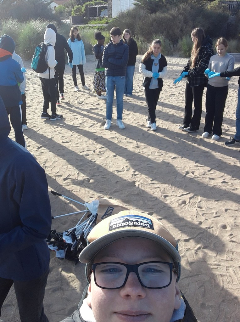 Idag har vi i Erasmus teamet varit på en strand som var typ en timme bort från Nantes. Vi var där för att plocka skräp från stranden 🚮. Medans vi plockade skräped så märkte vi att Granskarna var väldigt bra på att städa efter sig förutom de som fiskar, för det flästa som vi hittade var just fiske nät.