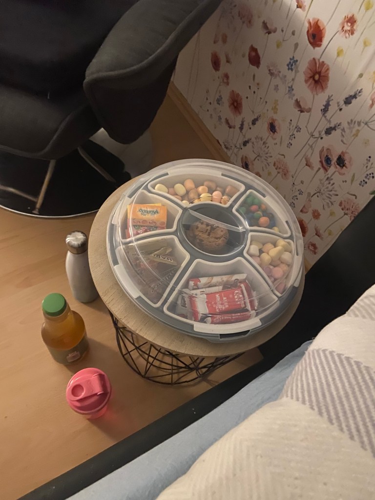 Efter skolan så var jag, Thula, Lykke, Lea, Lea och Theresa med varandra hemma och Lykke och Lea och där kollade vi film och åt godis. Nu när jag kom hem så hade Leas föräldrar ställt in godis och äpplejuice åt mig 🙂