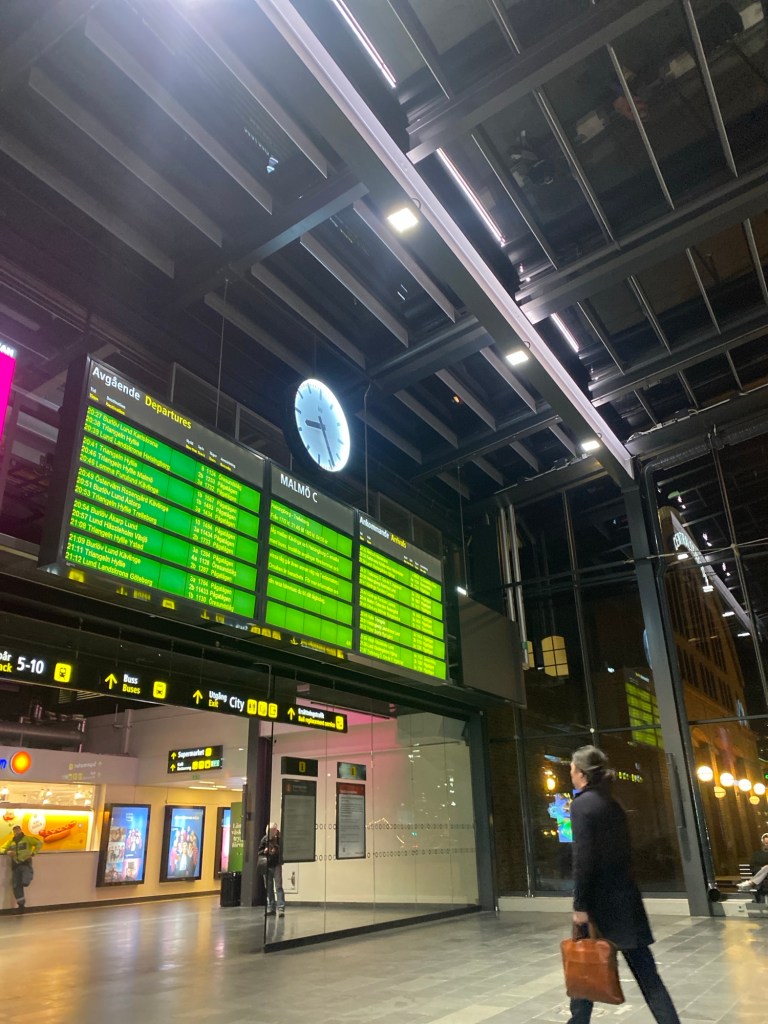 Nu är vi i Malmö central för att vänta på nattåget som går 22:00 till Stockholm.