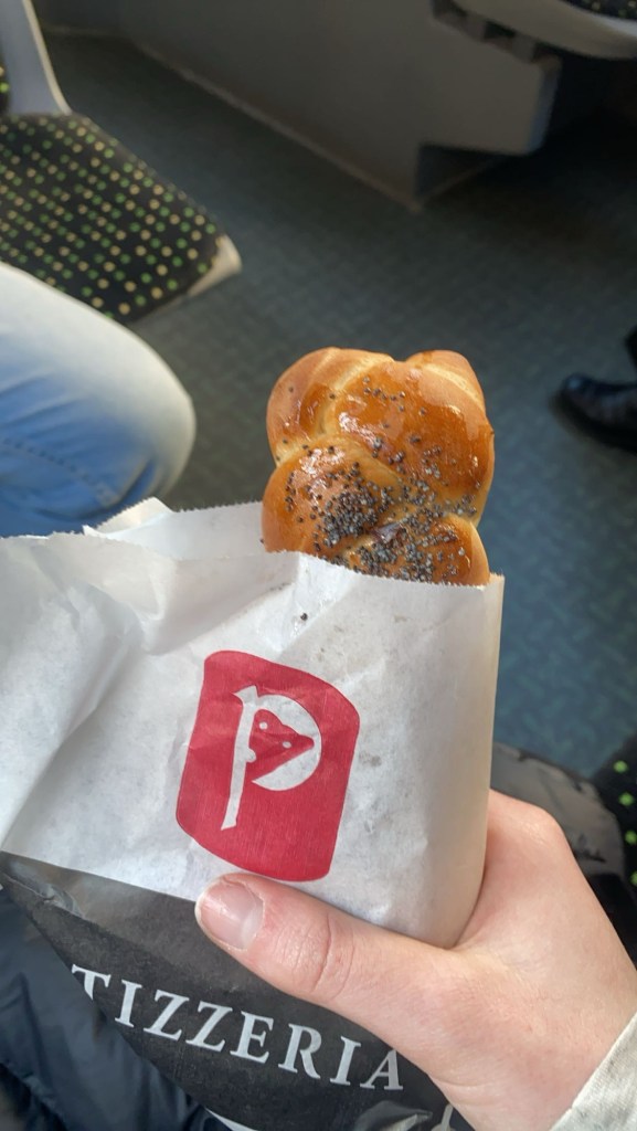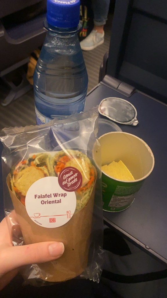 På tåget mot Wien köpte vi lunch och jag köpte tomat soppa med bröd som var god och nu ska vi bara vila typ.