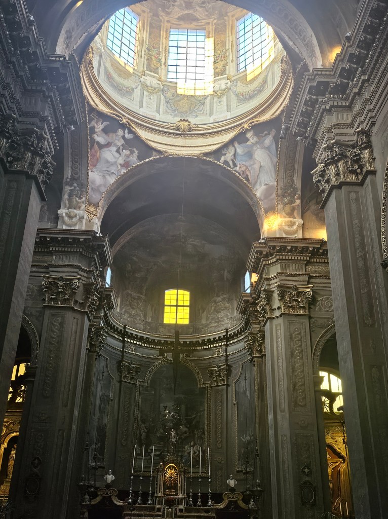 På eftermiddagen var det ny sightseeing i historisk tappning. Denna kyrka påminde lite om vår domkyrka men betydligt mörkare inomhus. Under turen fick vi äntligen se gatorna där man kan köpa med sig chark och ost med sig hem. Så fredag blir det absolut en sväng tillbaka dit. Kl 19:30 är det gemensam middag ute på en pizzeria.