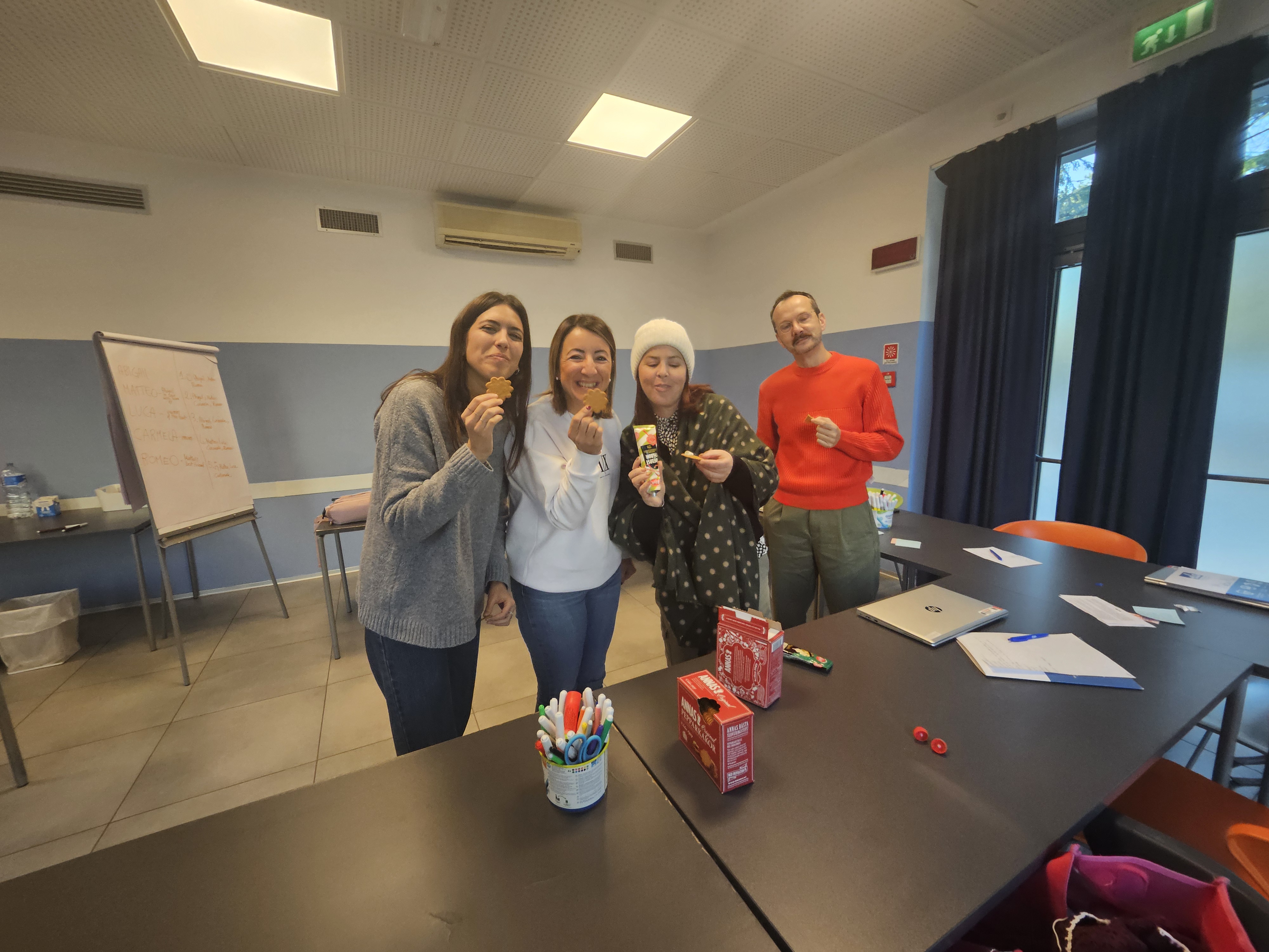 Vi i svenska gänget bjöd på pepparkakor med ädelost på tub och vi lyssnade på Mattias fina musik som han komponerat med hjälp av ai som handlar om kursen(jag hoppas du lägger upp den Mattias).Innan avslut fick vi summera kursen med vad gör vi redan idag på vår skola och vad tar vi med oss från denna kurs.
