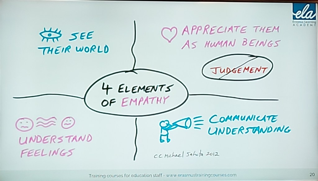 Dag fyra var nästan helt vigd till begreppet empati och vikten av att få möjlighet att känna samhörighet och få en känsla av att fylla en funktion i gruppen.