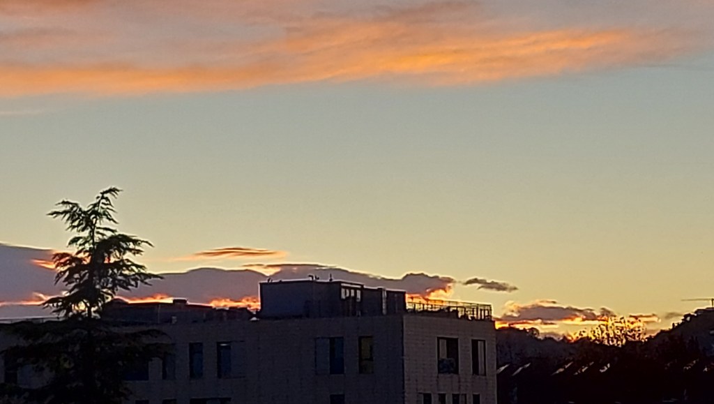 Då jag fastnade i jobb och blev sittande på hotellet så fick jag åtminstone njuta av en väldigt vacker solnedgång över hustaken från min balkong.