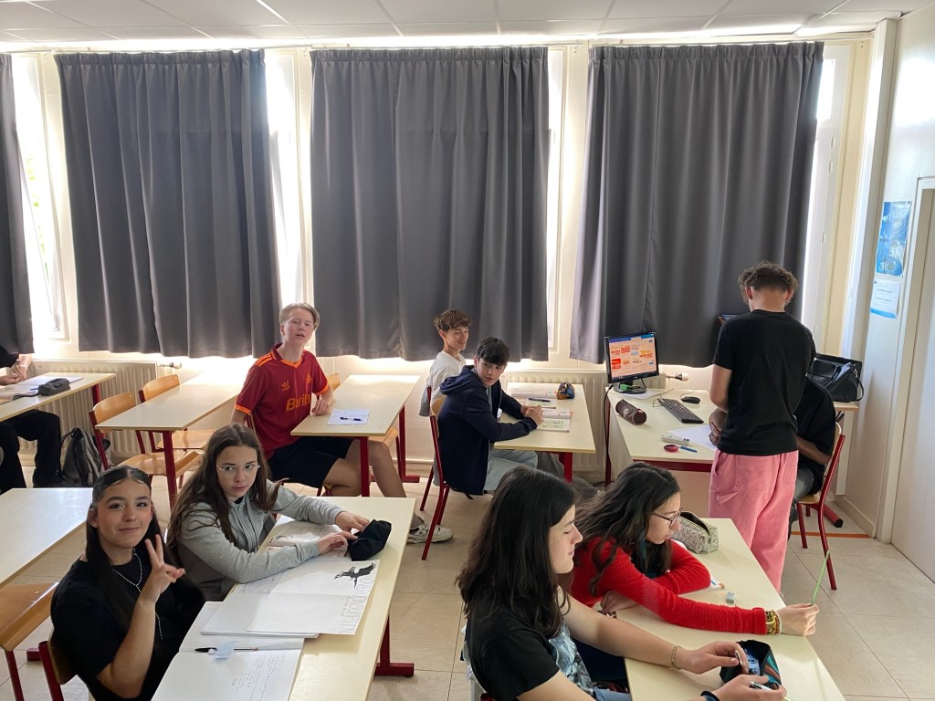 Skolan har ungefär 720 elever, men känns ändå inte större än Hedda. Klassen är trevlig, och jag tror jag börjar hitta min plats, även om franskan gör det svårt att hänga med ibland. Samtidigt lär jag mig varje dag, bara av att vara här.