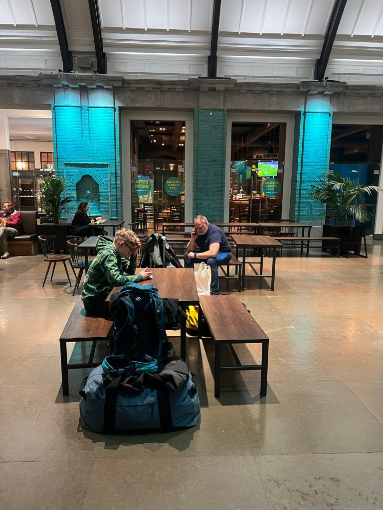 Min resa började söndag morgon 03:56 då jag och Erik klev på det första tåget mot Stockholm. Vi hade sittplatser så man kunde inte sova mycket mer. Tåget tog en “liten” omväg genom Västerås och Sala. Då vi tillslut kom fram i Stockholm åt vi sushi till lunch och sedan började väntandet. Alla skåp var upptagna så vi fick släpa runt på all vårt bagage vilket gjorde så att vi inte kunde gå runt genom Stockholm. Vi satt bara på en bänk inne på stationen och väntade några timmar.