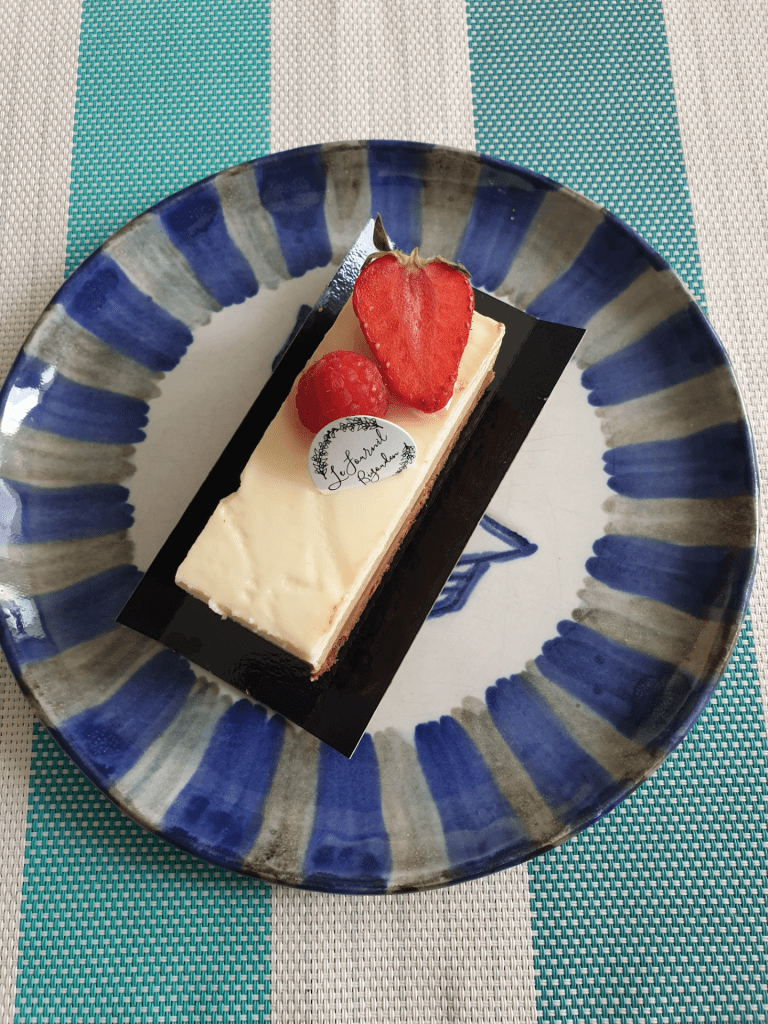 På lördagen åkte vi till Normandie igen, till mina värdmammas föräldras hus, eftersom min värdpappa Nicolas skulle springa ett 32 kilometerslopp. Vi åt frukost runt 09:30, med allt som vanligt – plus en honungskaka som var otroligt god! Innan vi åkte tog jag en löptur på 5 km och köpte en pain au chocolat som belöning.
