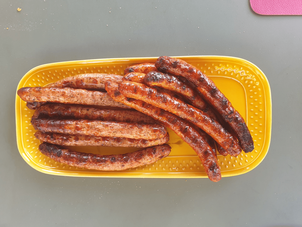 Det är första gången som de tar fram grillen i år och det blev riktigt gott. Korv med couscous och tomatsås.