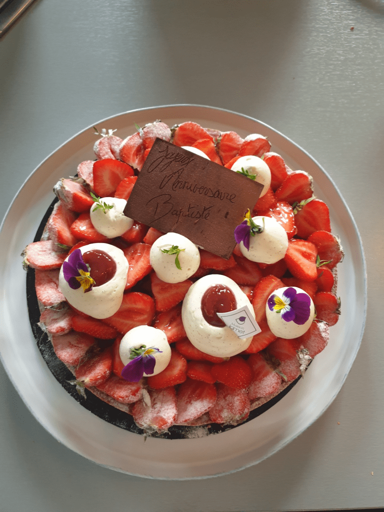 Det var även Baptistes (Clements ena bror) födelsedag så de hade köpt en jordgubbstårta. Den var riktig god. I födelsedagspresent fick han ett spel som fick mig att tänka på jeu de boule. Man skulle kasta runda metallskivor, typ som mynt fast lite större, på en träplanka och de skulle landa så nära som möjligt den första skivan.